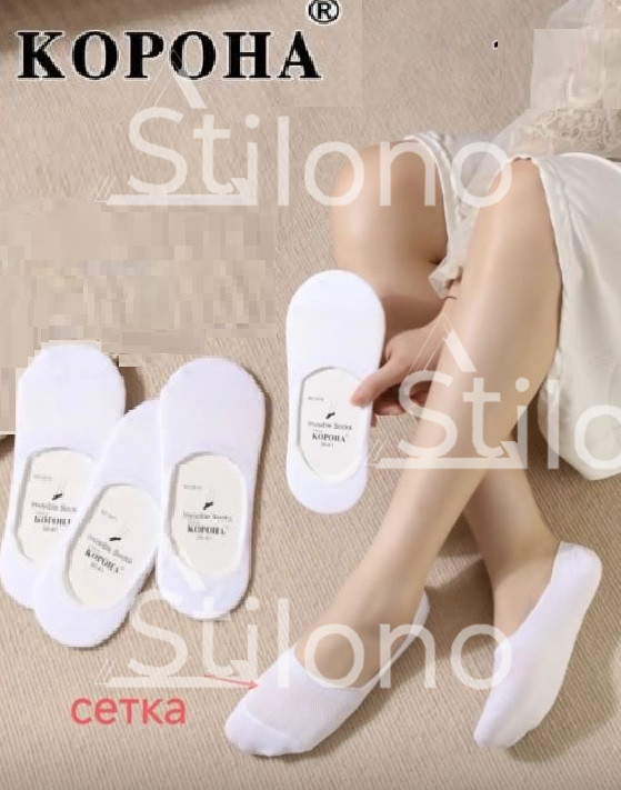 Белые женские следки с сетку (силиконовый задник) КОРОНА