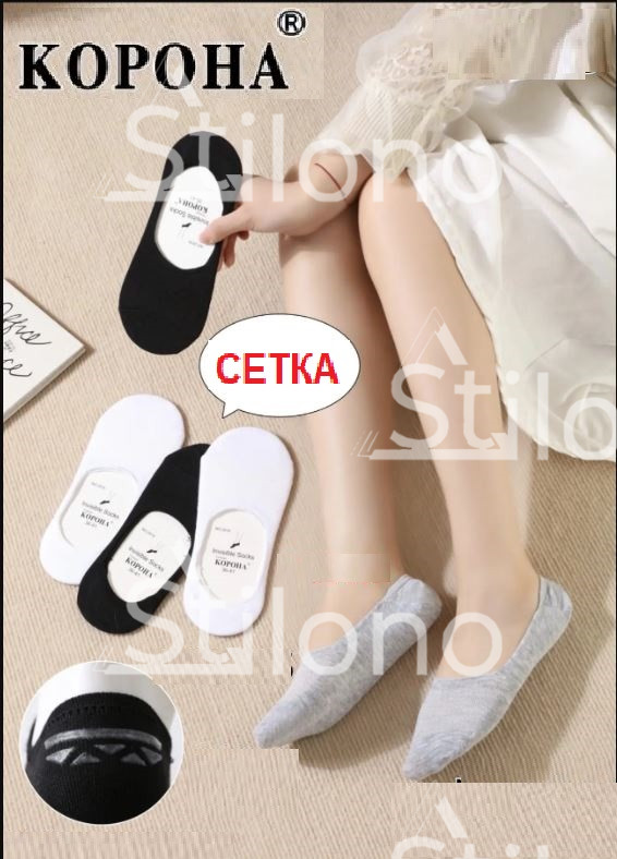 Женские следки с сетку (силиконовый задник) КОРОНА