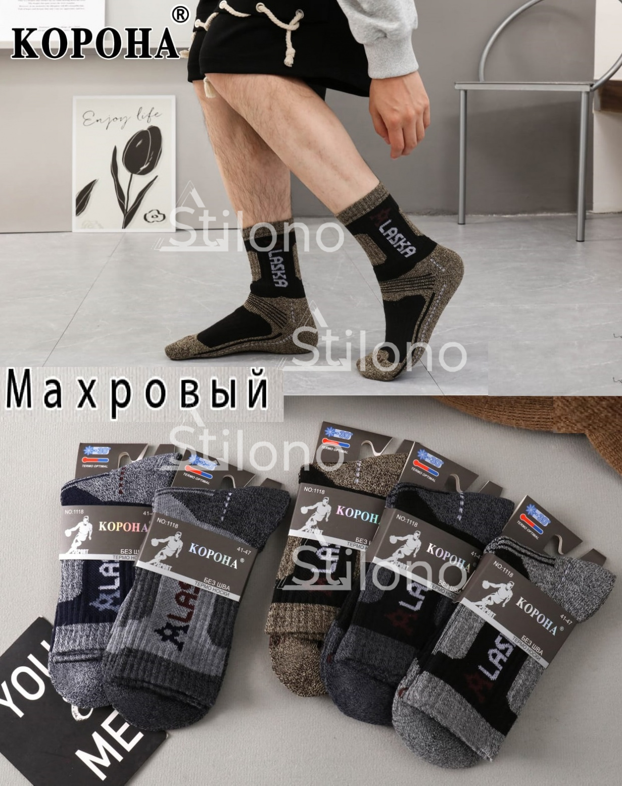 Мужские бесшовные махровые термоноски Аляска